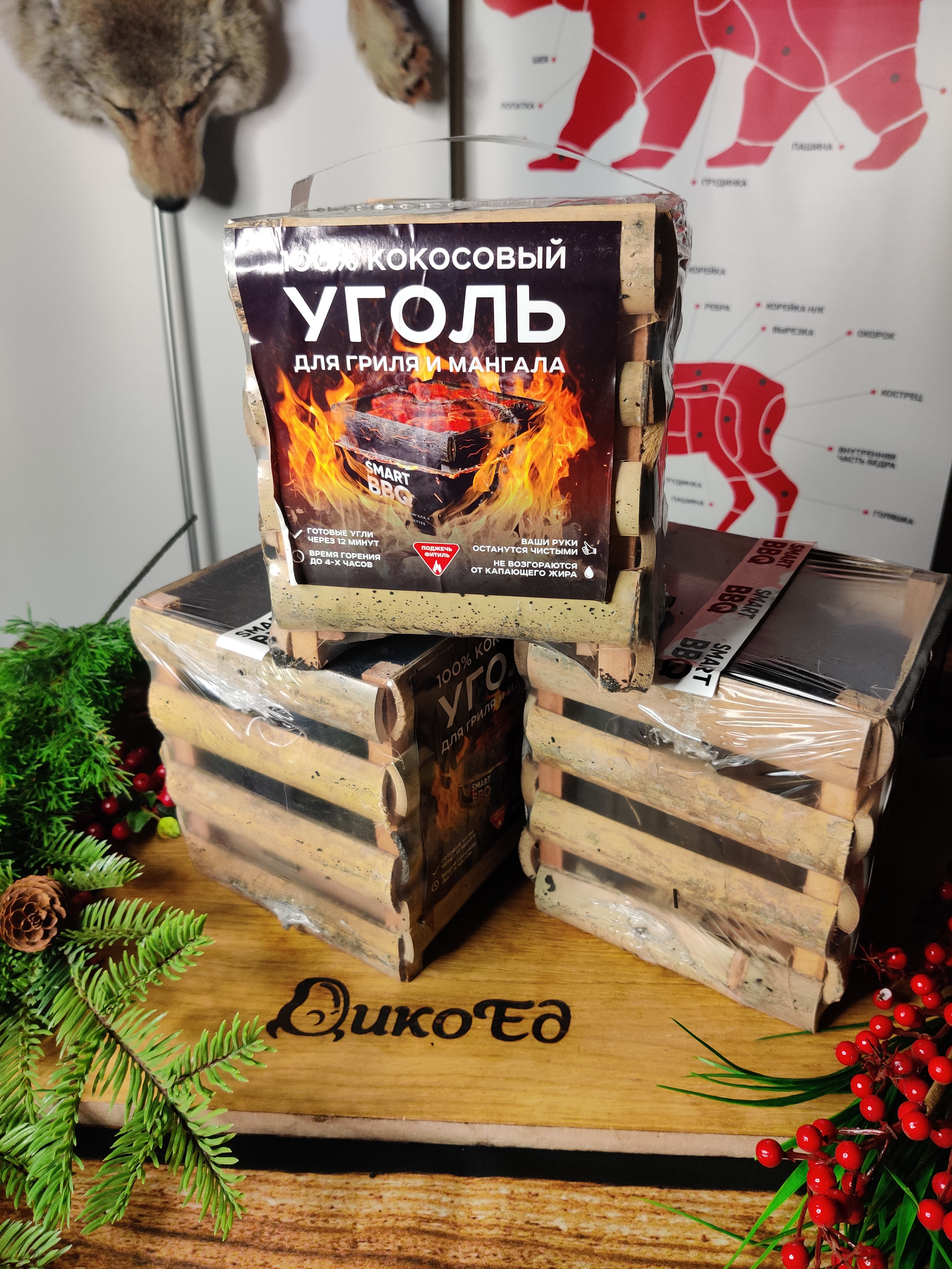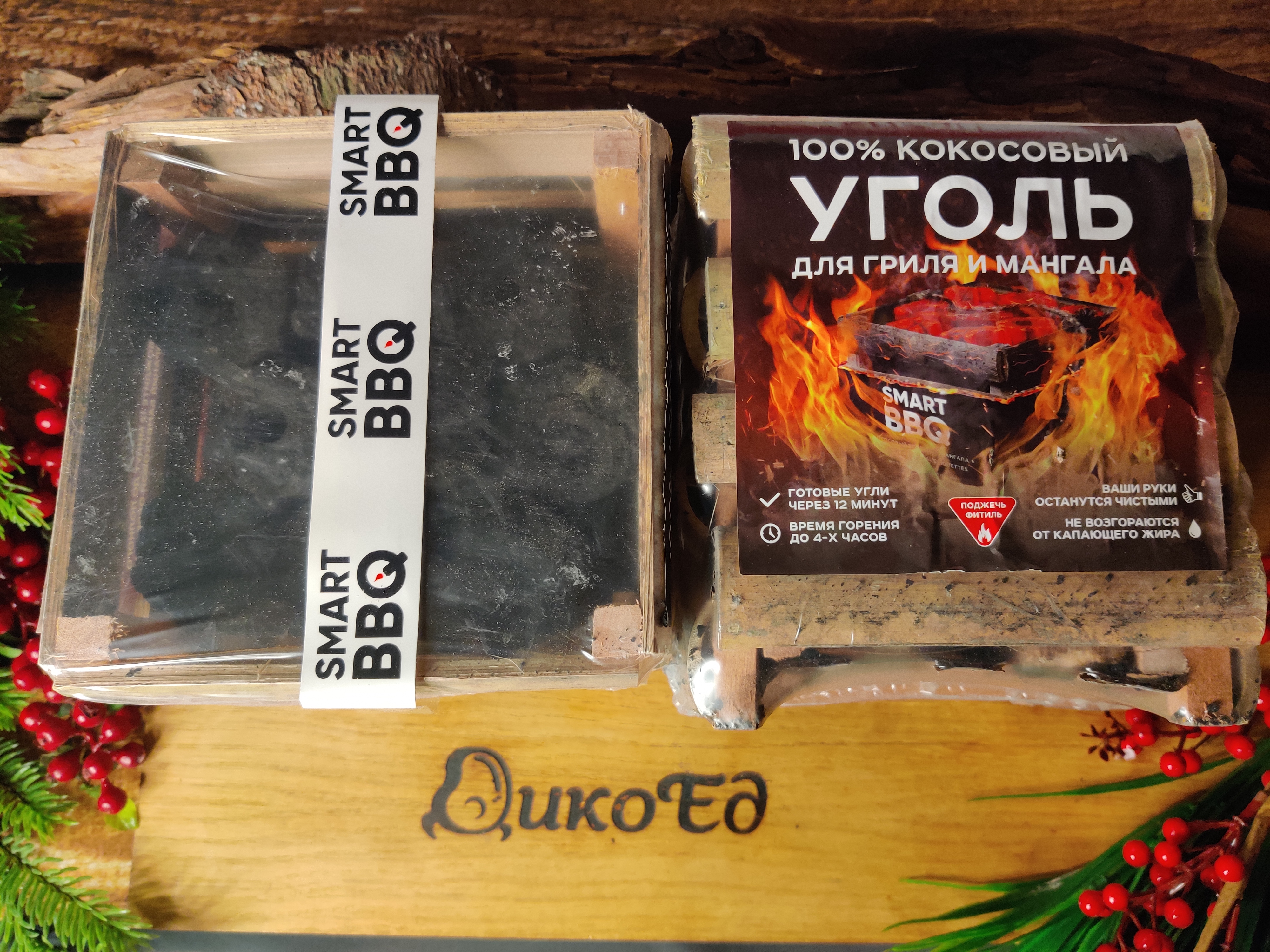 Упаковка: деревянная коробка 2кг (вес угля 1,6 кг)