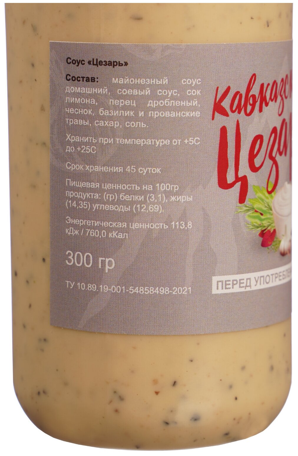 Соус кавказский цезарь отличается приятным вкусом с пикантными чесночно-пряными нотками. Идеально подходит для овощных холодных салатов. Заправка гармонирует с мясом, морепродуктами, ананасом, сыром, орехами. Используется при приготовлении пиццы и картофеля-фри. Приправа богата полиненасыщенными жирными кислотами, холином, белком, витаминами и микроэлементами, полезными для организма. Вещества, входящие в состав продукта, препятствуют развитию онкологических заболеваний и старению клеток, нормализуют уровень сахара и холестерина в крови, активизируют работу мозга, повышают иммунитет.
