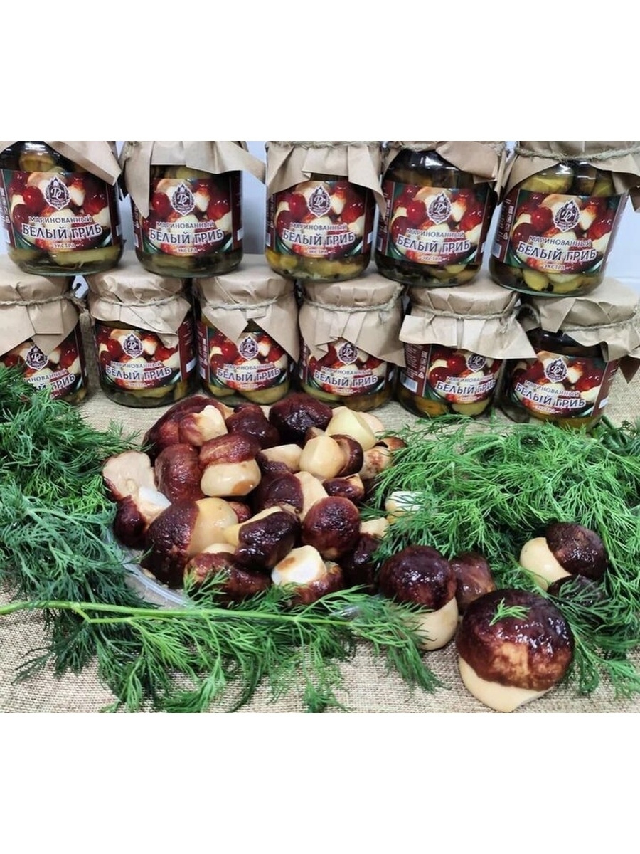 Состав: белый гриб солено-отварной, вода, соль, сахар, уксусная кислота, лавровый лист, перец черный горошек