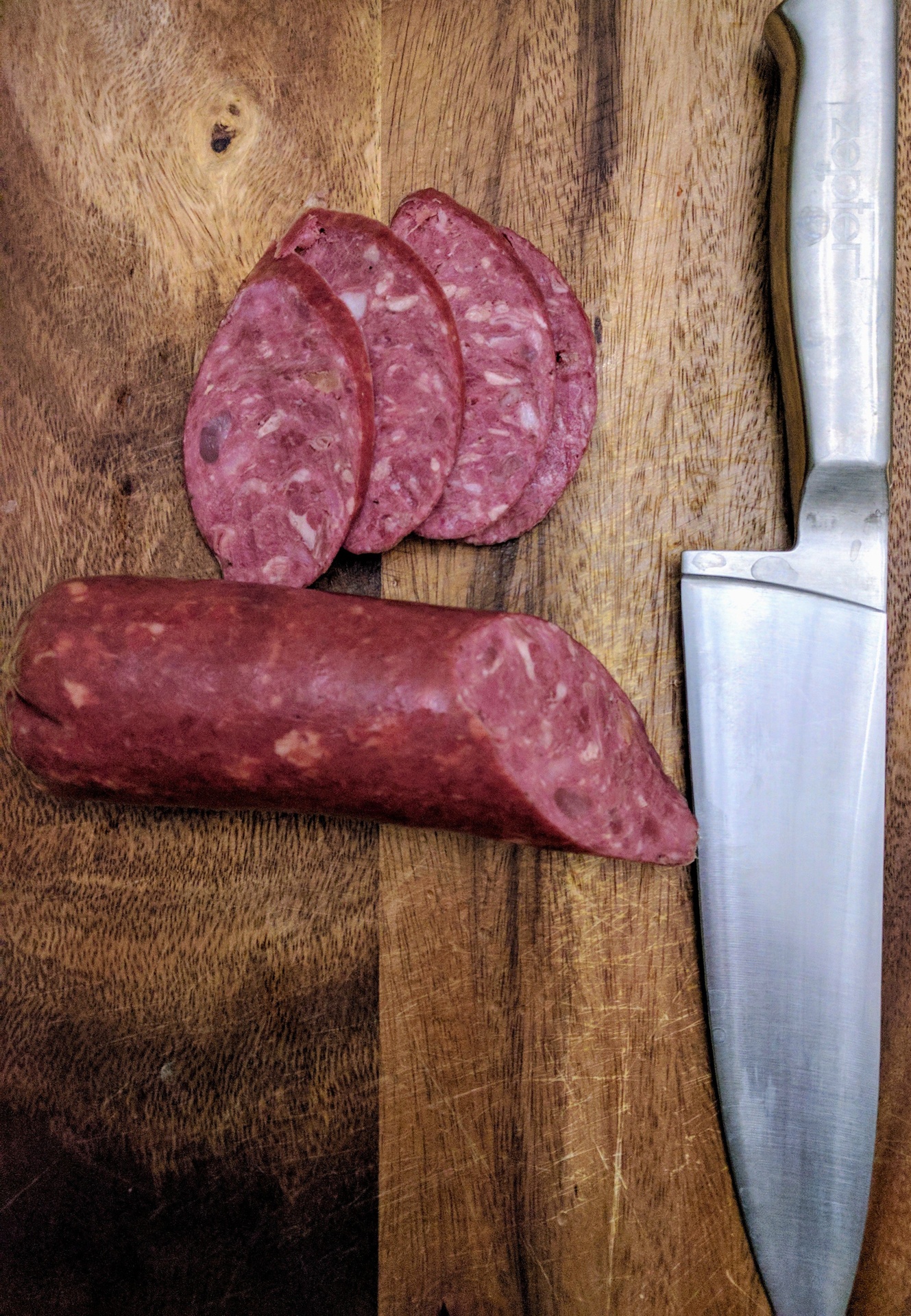 | Состав: | лосятина, шпиг, лук, чеснок, соль, перец, натуральная оболочка |